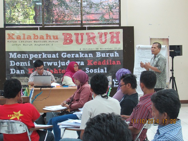 Bantuanhukum.or.id – Jakarta ; Pada tanggal 12 Oktober 2014, merupakan hari kedua bagi acara Karya Latihan Bantuan Hukum untuk Buruh (“Kalabahu Buruh”). Pada sesi ini, peserta mendapatkan 2 (dua) materi yakni Perempuan dan Feminisme dan Gerakan Bantuan Hukum Struktural. Materi buruh dan feminisme dibawakan oleh Pratiwi Febry, S.H. yang juga kepala bidang Penelitian dan Pusat…
