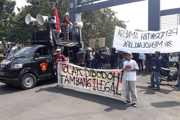 Masyarakat dari 3 Kecamatan di Kabupaten Bogor, (Rumpin, Parung Panjang, dan Gunung Sindur) melakukan unjuk rasa di depan Kantor Bupati…